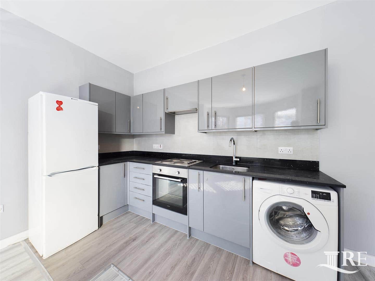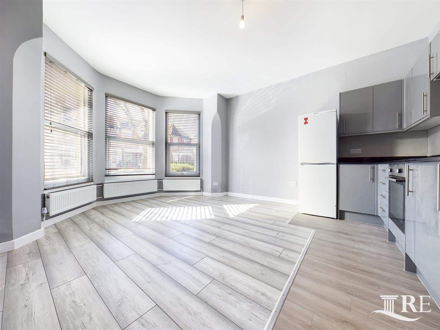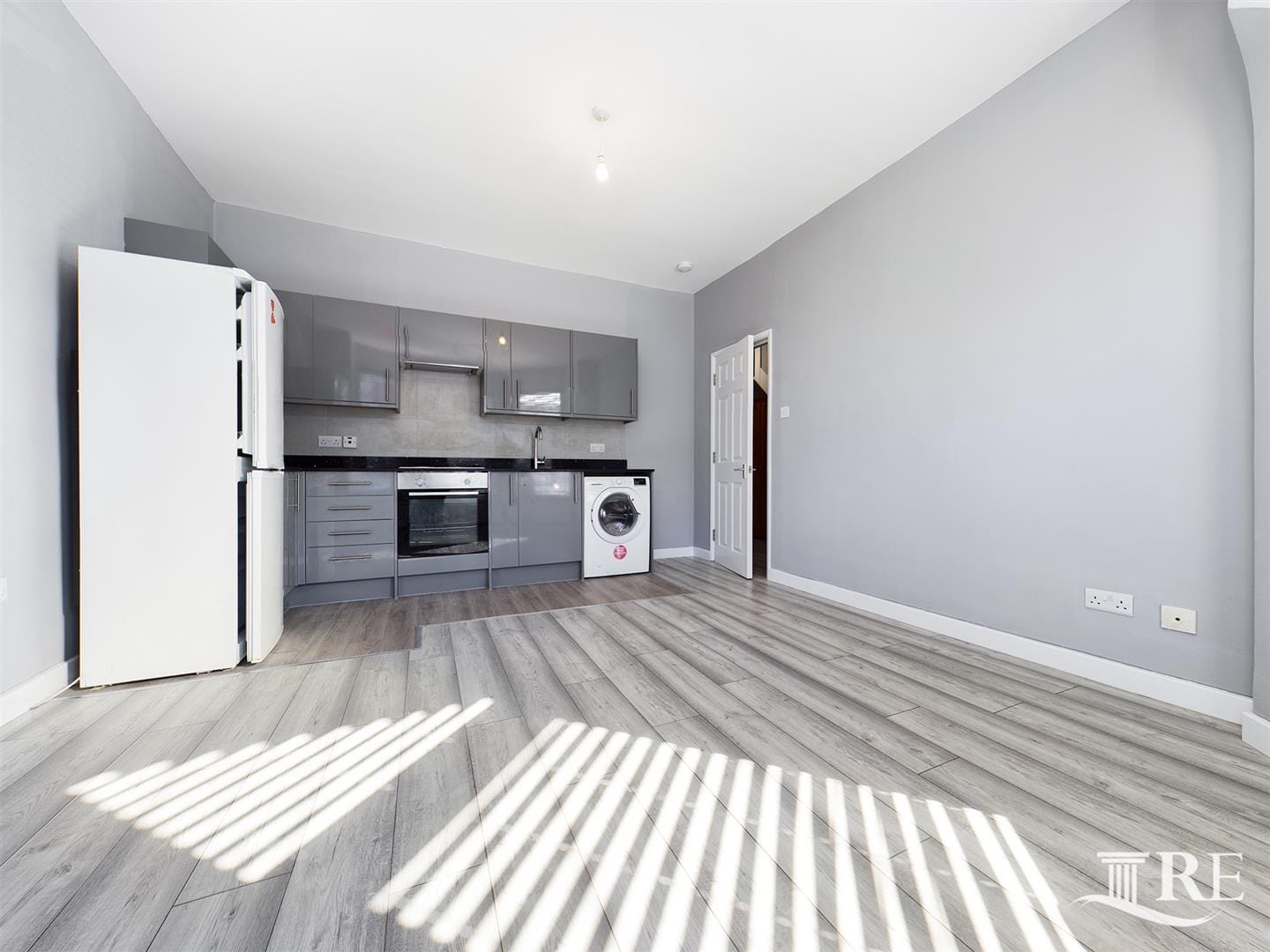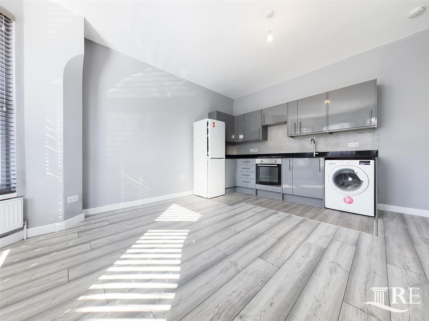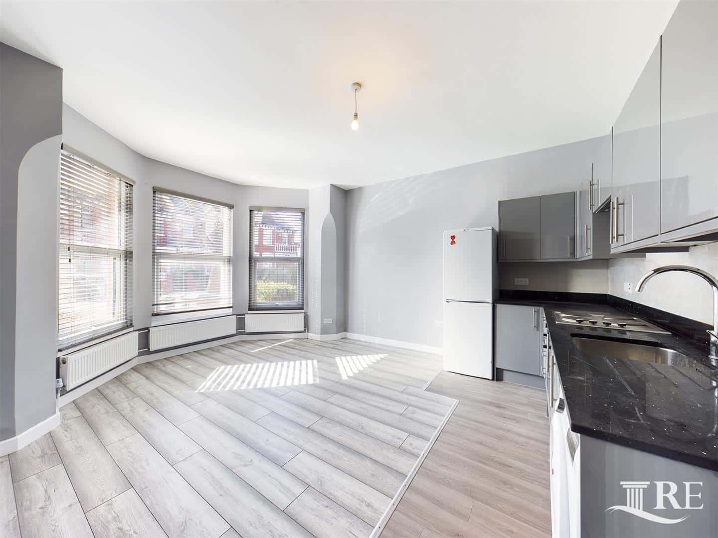 The flat comprises an open plan kitchen/lounge, one double bedroom, one single bedroom, and a brand-new bathroom.