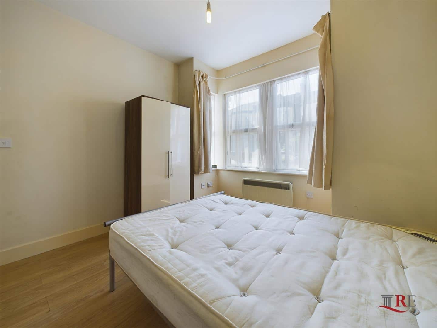 - Includes furniture (double bed, chest of drawers, wardrobe and fridge)
